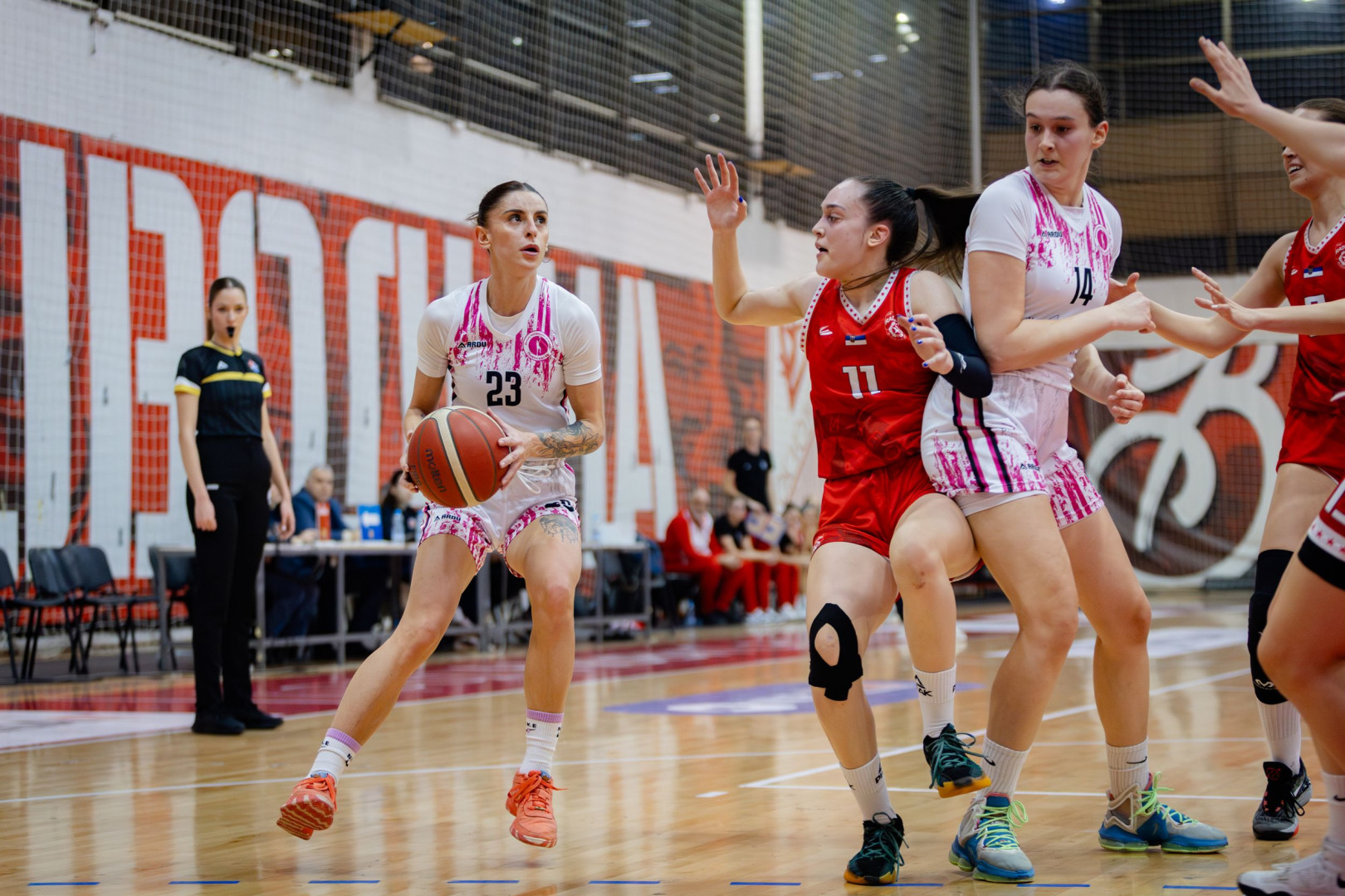 Trener Snježana Vasić na teren je poslala petorku Marinković- Karanović- Gordanić- J. Maksimović- N. Maksimović. Sporo otvaranje ekipe omogućilo je rivalu dva poseda prednosti. Osam vezanih poena ekipe obeležilo je finiš prve deonice- 11:9. Odlično su devojke odigrale drugi kvartal, na obe strane parketa bile vrlo fokusirane, što ih je na velikom odmoru dovelo do velike prednosti- 33:13.