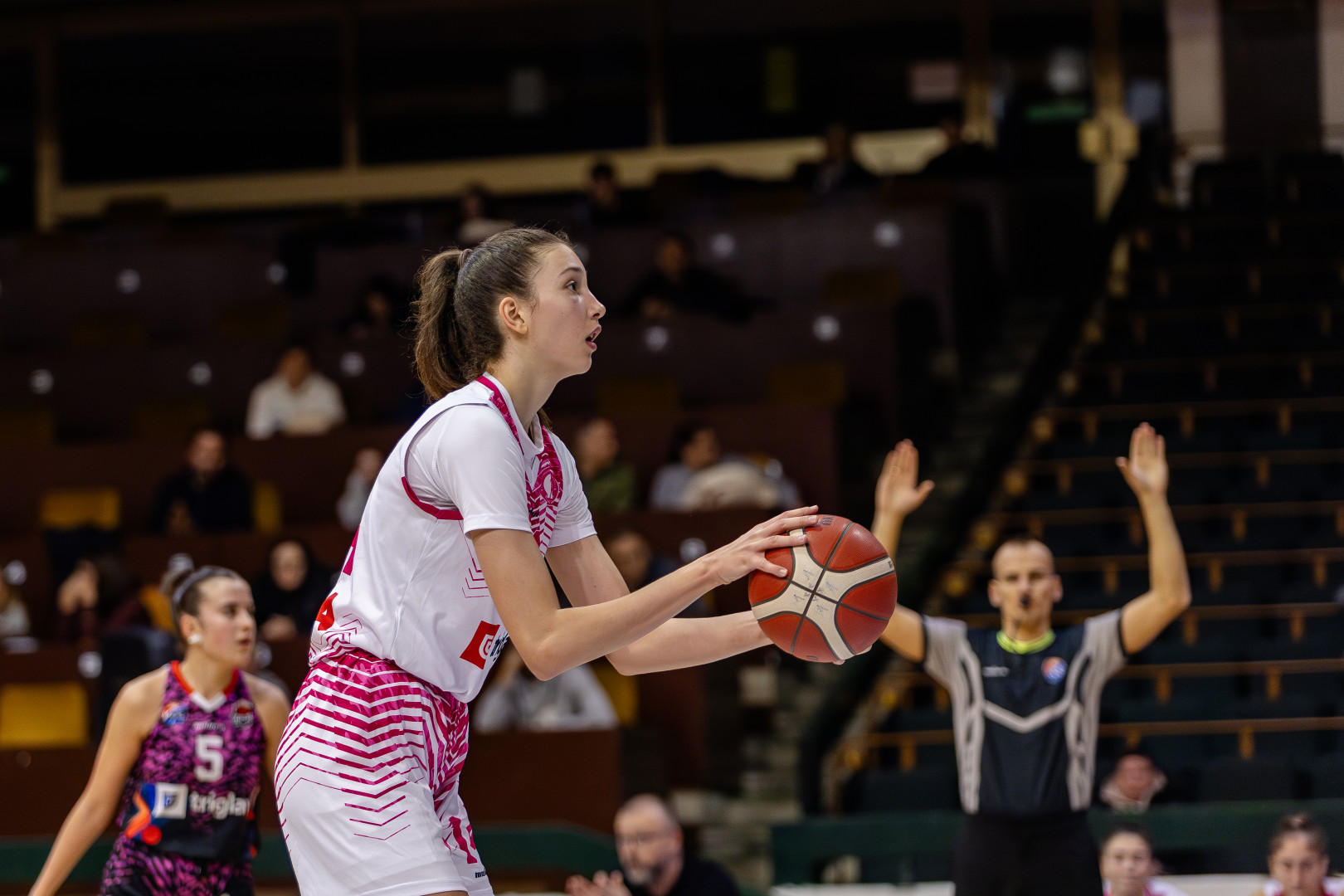 Trener Snježana Vasić je na parket izvela petorku Jovanov- Kačar- Gordanić- Marinković- N. Maksimović. Nakon dobrog početka i vođstva 8:3, gošće su povezale pet poena, što je našeg trenera nateralo na minut odmora, nakon čega je ekipa povezala sedam poena- 15:8. U nastavku smo imali i dvocifrenu prednost, ali su gošće, kojima je pripala izjednačena druga deonica,  umanjile prednost- 29:23.